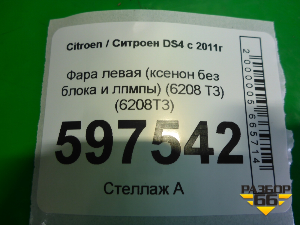 Фара левая (ксенон без блока и лампы) (6208 T3) (6208T3) для Citroen DS4 с 2011г (ДС 4) в Челябинске