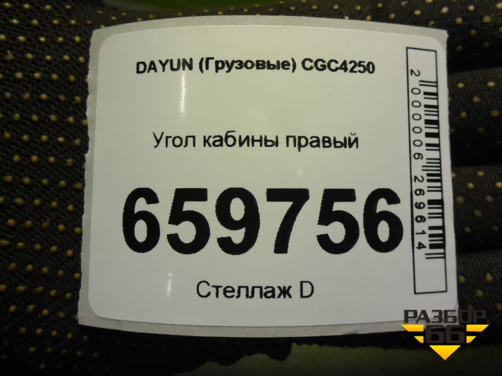 Угол кабины правый (531MBA06102) для DAYUN CGC4250 в Челябинске
