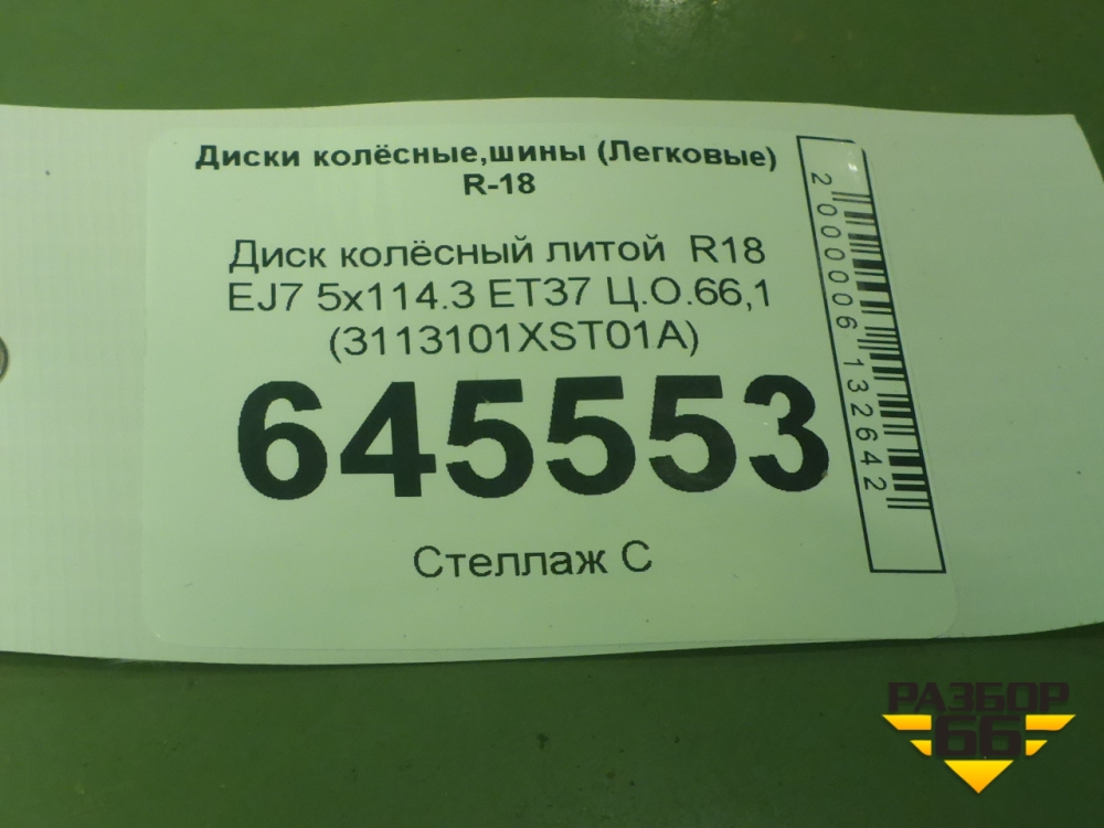 Диск колёсный литой R18 EJ7 5x114.3 ET37 Ц.О.66,1 (3113101XST01A) в Челябинске