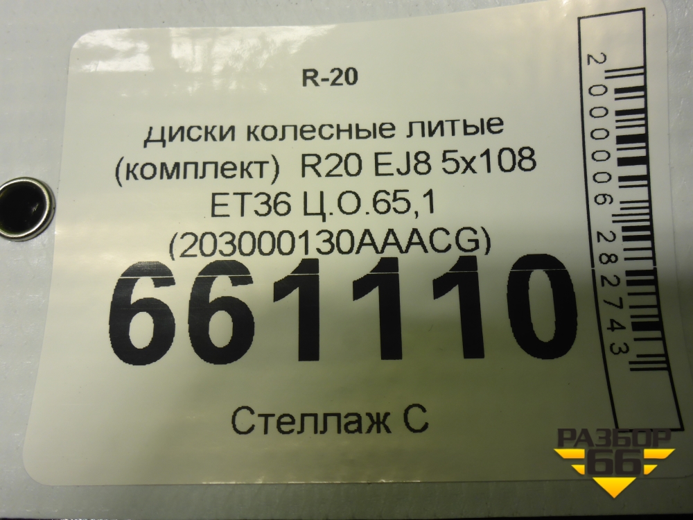 Диски колёсные литые (комплект) R20 EJ8 5x108 ET36 Ц.О.65,1 (203000130AAACG) в Челябинске