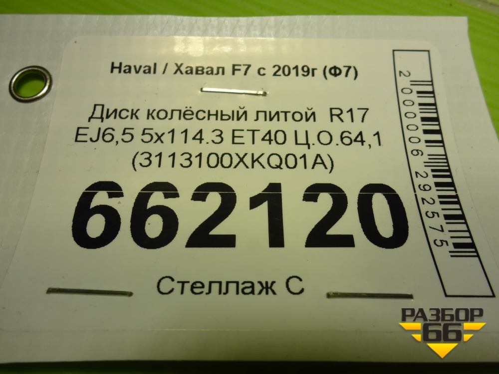 Диск колёсный литой R17 EJ6,5 5x114.3 ET40 Ц.О.64,1 (3113100XKQ01A) в Челябинске