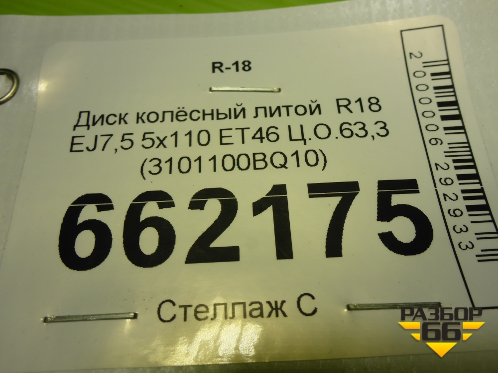 Диск колёсный литой R18 EJ7,5 5x110 ET46 Ц.О.63,3 (3101100BQ10) в Челябинске