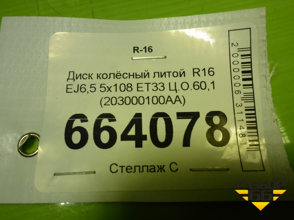 Диск колёсный литой R16 EJ6,5 5x108 ET33 Ц.О.60,1 (203000100AA) в Челябинске