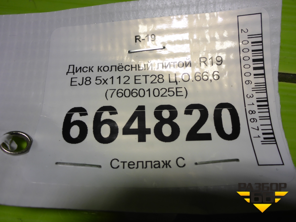 Диск колёсный литой R19 EJ8 5x112 ET28 Ц.О.66,6 (760601025E) в Челябинске