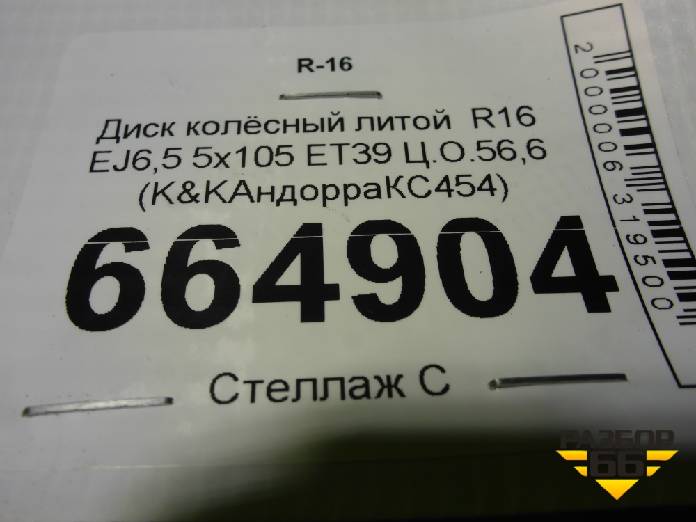 Диск колёсный литой R16 EJ6,5 5x105 ET39 Ц.О.56,6 (K&KАндорраКС454) в Челябинске