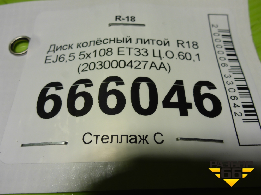 Диск колёсный литой R18 EJ6,5 5x108 ET33 Ц.О.60,1 (203000427AA) в Челябинске