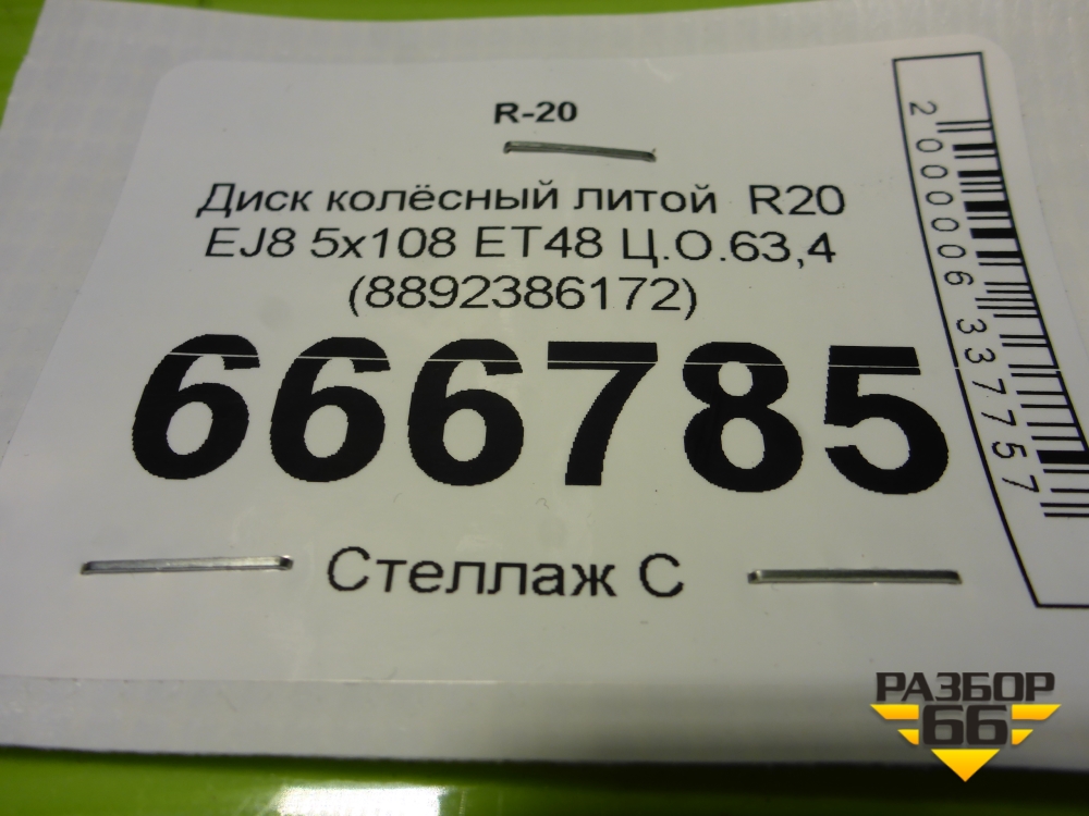 Диск колёсный литой R20 EJ8 5x108 ET48 Ц.О.63,4 (8892386172) в Челябинске
