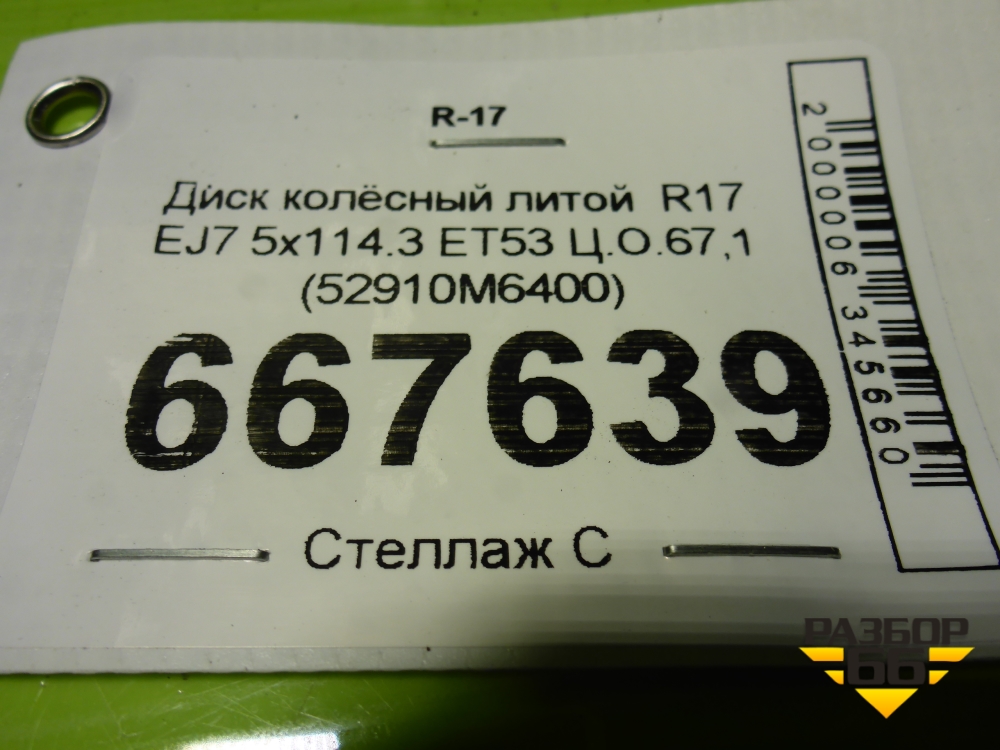 Диск колёсный литой R17 EJ7 5x114.3 ET53 Ц.О.67,1 (52910M6400) в Челябинске