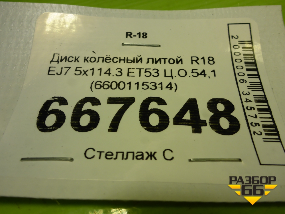 Диск колёсный литой R18 EJ7 5x114.3 ET53 Ц.О.54,1 (6600115314) в Челябинске