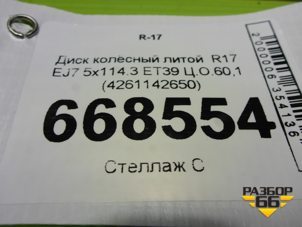 Диск колёсный литой R17 EJ7 5x114.3 ET39 Ц.О.60,1 (4261142650) в Челябинске