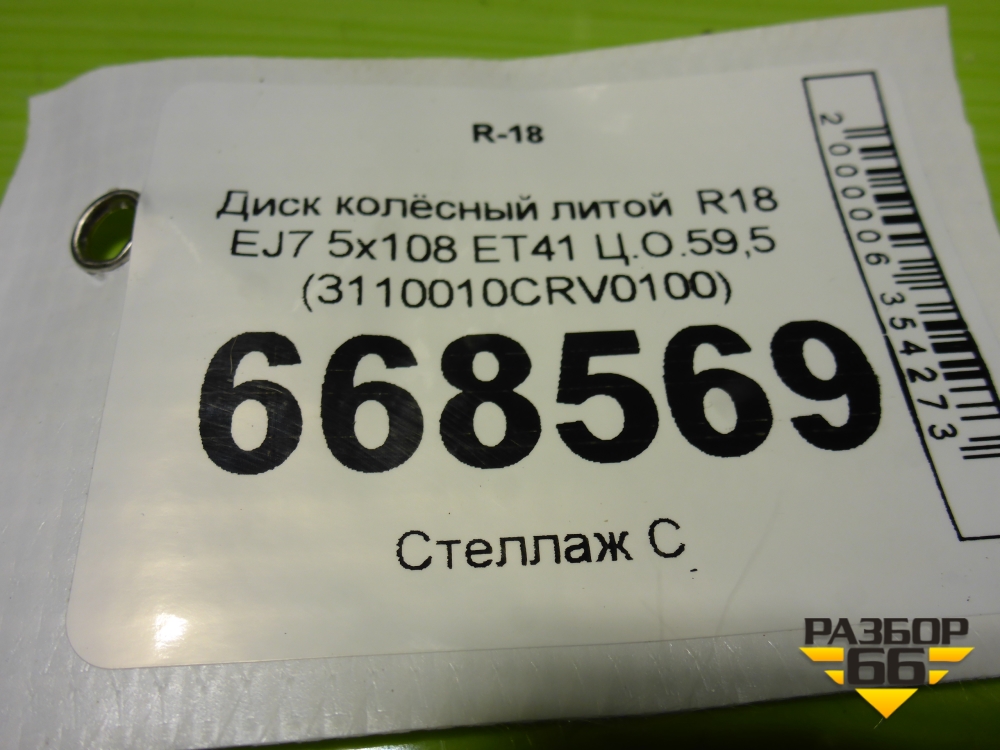 Диск колёсный литой R18 EJ7 5x108 ET41 Ц.О.59,5 (3110010CRV0100) в Челябинске