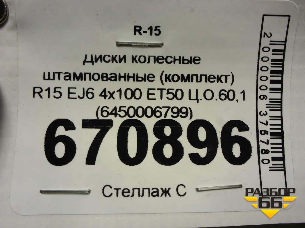 Диски колёсные штампованные (комплект) R15 EJ6 4х100 ET50 Ц.О.60,1 (6450006799) в Челябинске