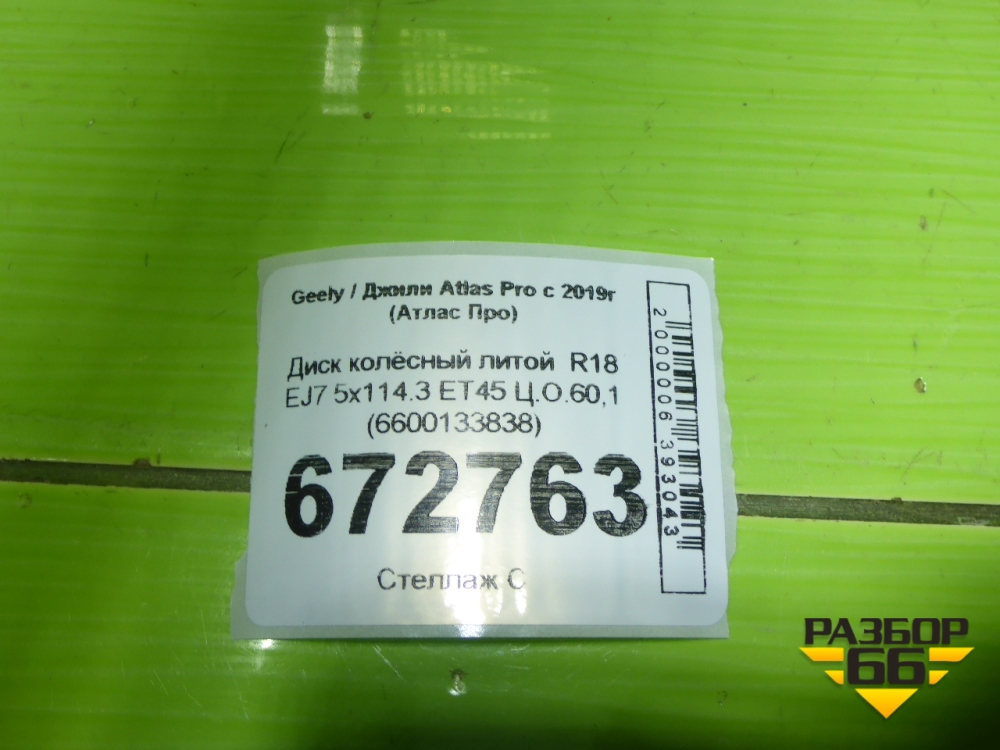 Диск колёсный литой R18 EJ7 5x114.3 ET45 Ц.О.60,1 (6600133838) в Челябинске