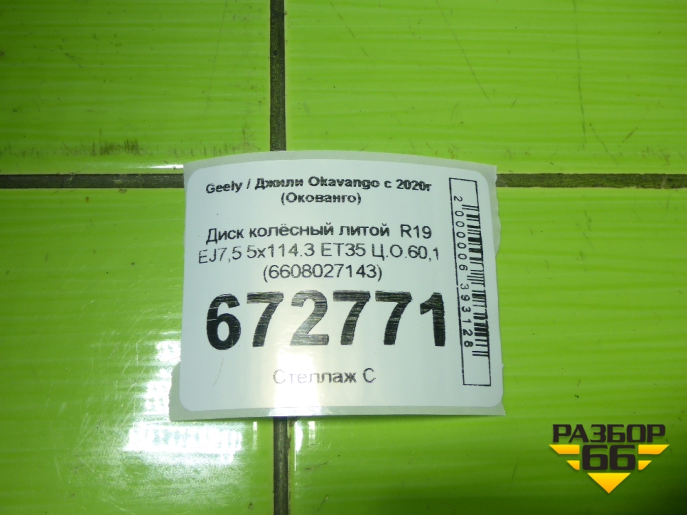 Диск колёсный литой R19 EJ7,5 5x114.3 ET35 Ц.О.60,1 (6608027143) в Челябинске