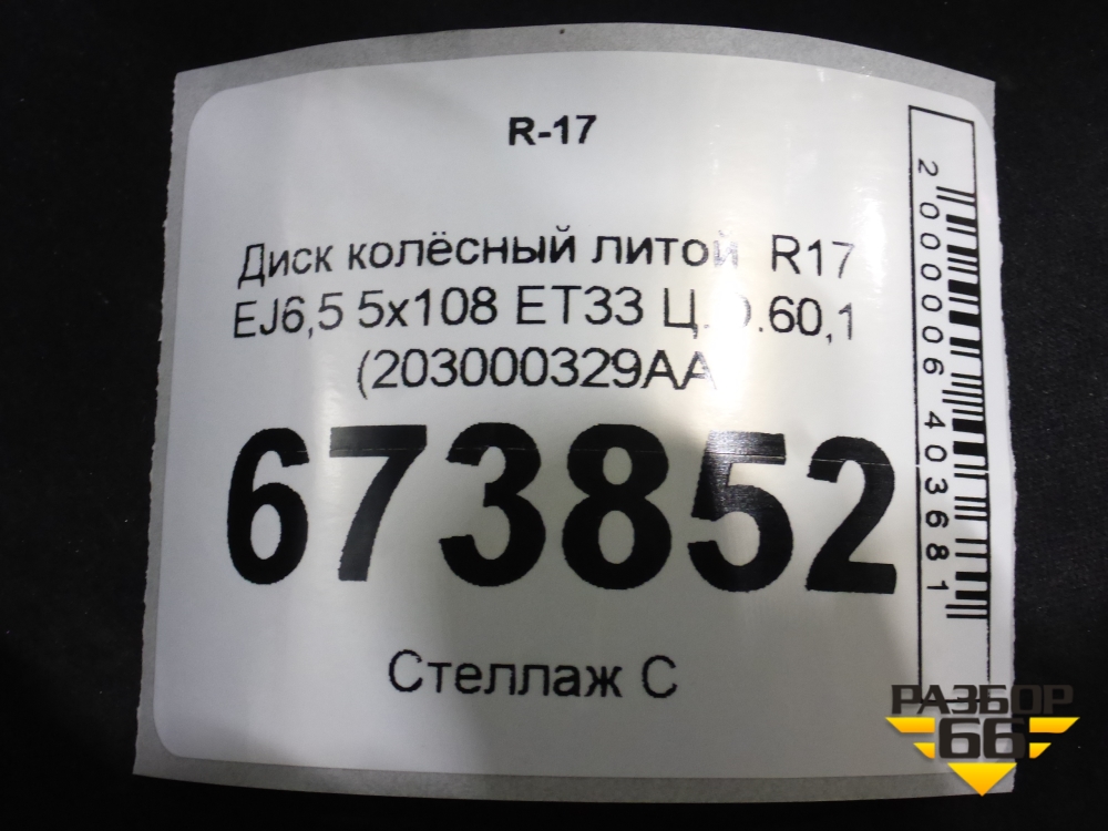 Диск колёсный литой R17 EJ6,5 5x108 ET33 Ц.О.60,1 (203000329AA) в Челябинске