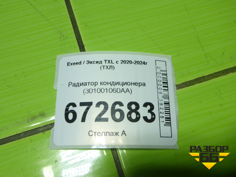 Радиатор кондиционера (301001060AA) для Exeed TXL с 2020-2024г (ТХЛ) в Челябинске