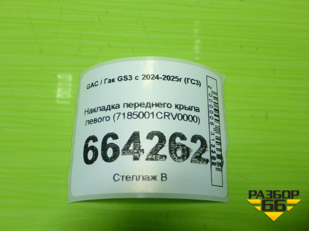 Накладка переднего крыла левого (7185001CRV0000) для GAC GS3 с 2024-2025г (ГС3) в Челябинске
