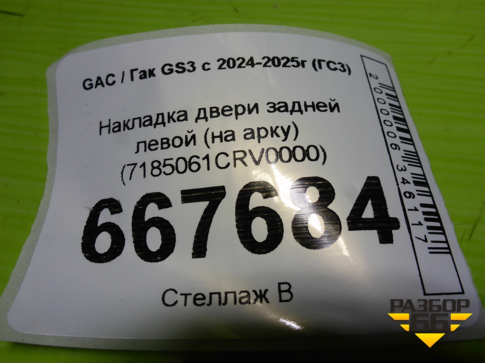 Накладка двери задней левой (на арку) (7185061CRV0000) для GAC GS3 с 2024-2025г (ГС3) в Челябинске