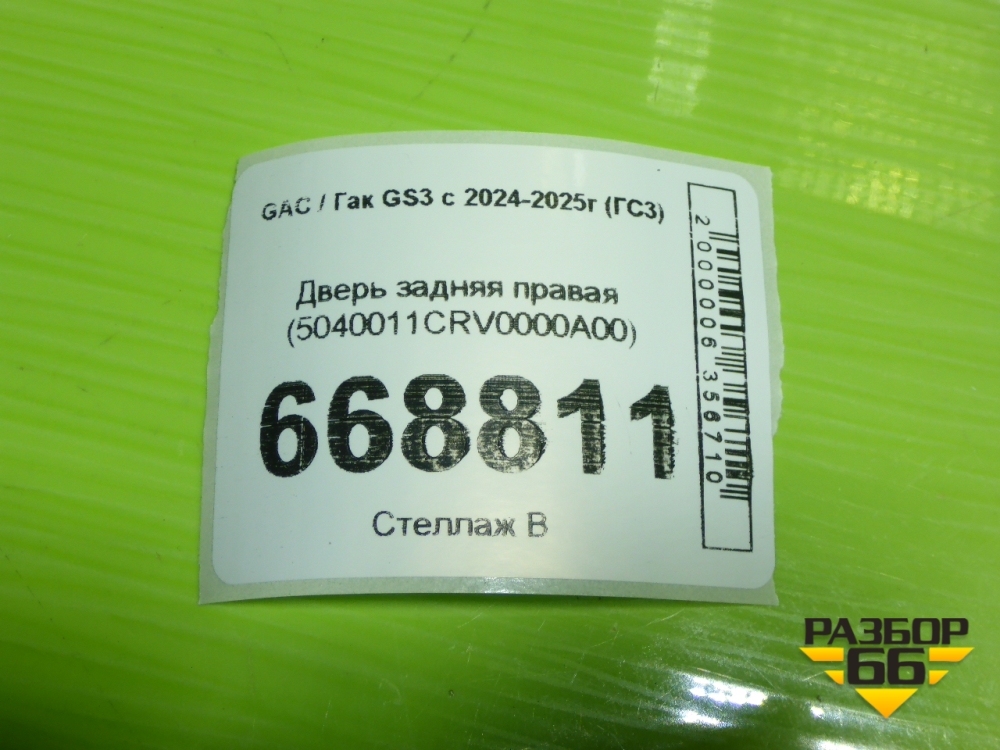 Дверь задняя правая (5040011CRV0000A00) для GAC GS3 с 2024-2025г (ГС3) в Челябинске