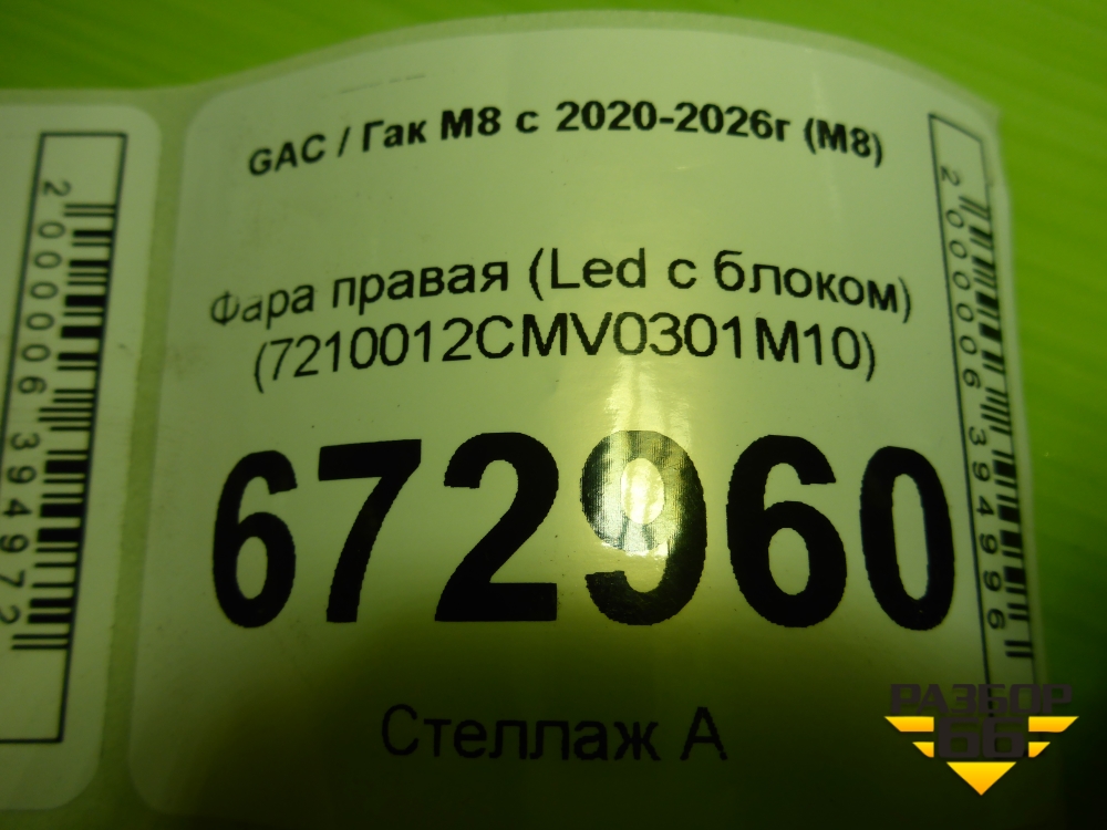 Фара правая (Led с блоком) (7210012CMV0301M10) для GAC M8 с 2020-2026г (М8) в Челябинске