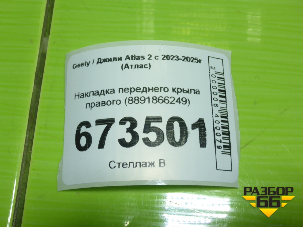 Накладка переднего крыла правого (8891866249) для Geely Atlas 2 с 2023-2025г (Атлас) в Челябинске