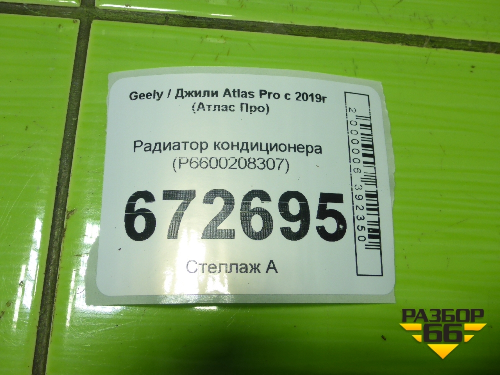 Радиатор кондиционера (P6600208307) для Geely Atlas Pro с 2019г (Атлас Про) в Челябинске
