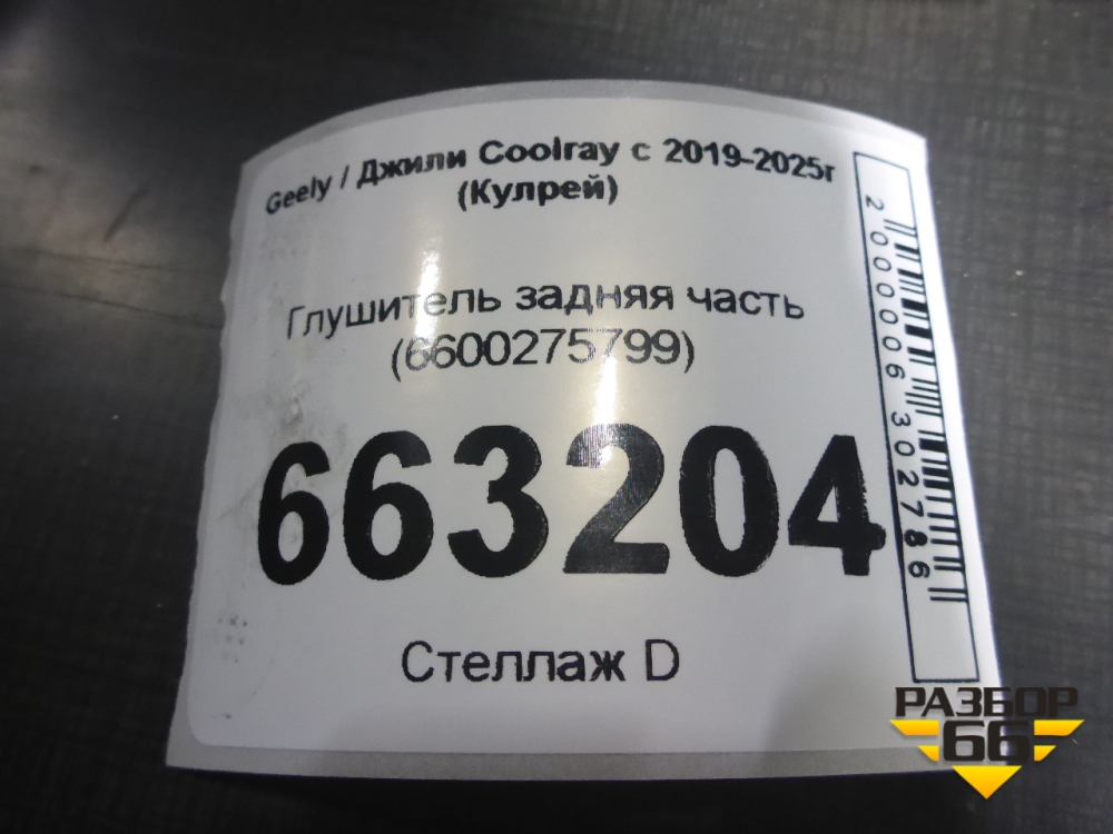 Глушитель задняя часть (6600275799) для Geely Coolray с 2019-2025г (Кулрей) в Челябинске
