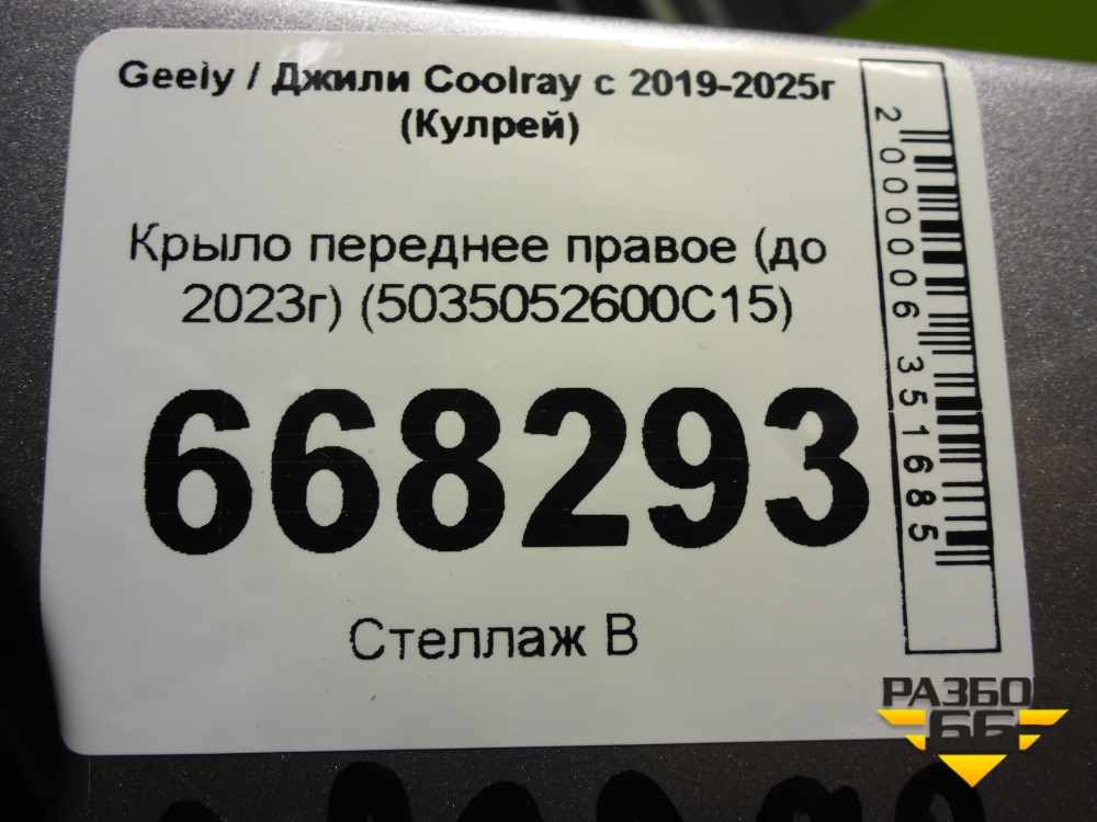 Крыло переднее правое (до 2023г) (5035052600C15) для Geely Coolray с 2019-2025г (Кулрей) в Челябинске