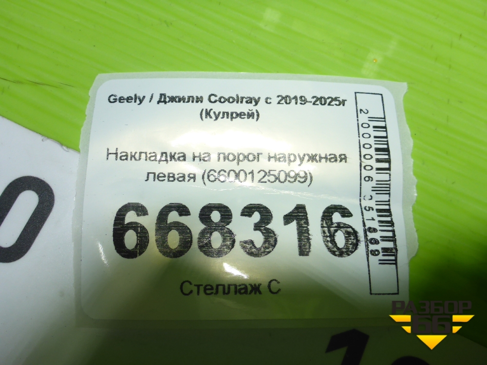 Накладка на порог наружная левая (6600125099) для Geely Coolray с 2019-2025г (Кулрей) в Челябинске