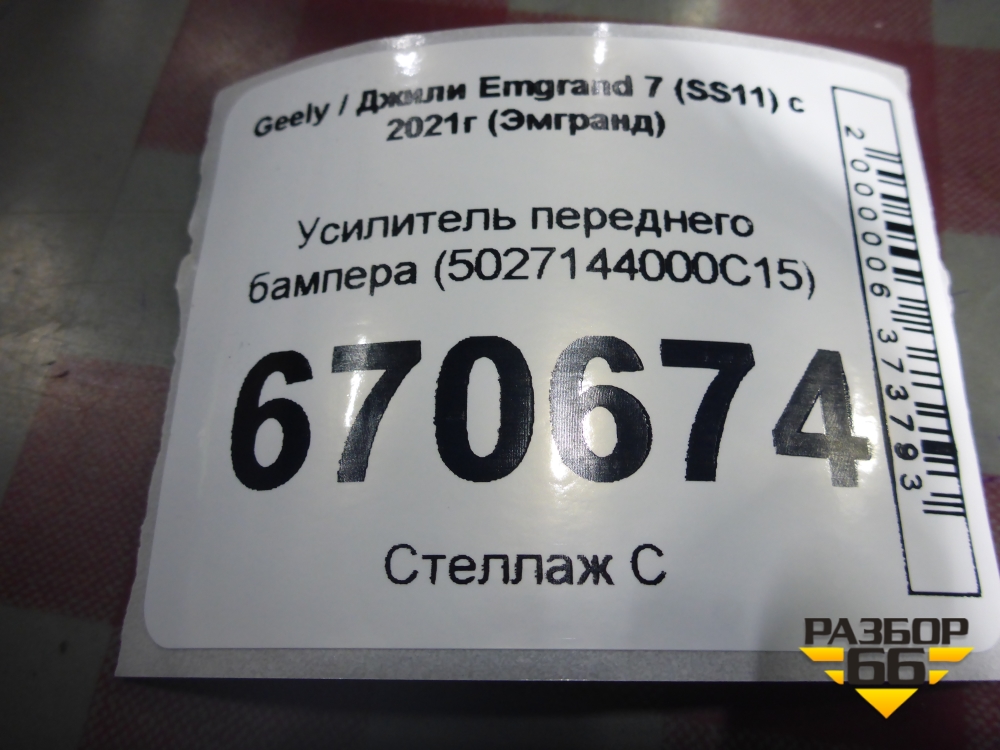 Усилитель переднего бампера (5027144000C15) для Geely Emgrand 7 (SS11) с 2021г (Эмгранд) в Челябинске
