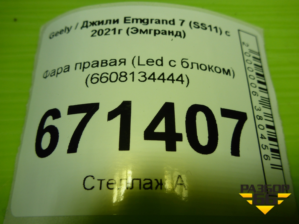 Фара правая (Led с блоком) (6608134444) для Geely Emgrand 7 (SS11) с 2021г (Эмгранд) в Челябинске