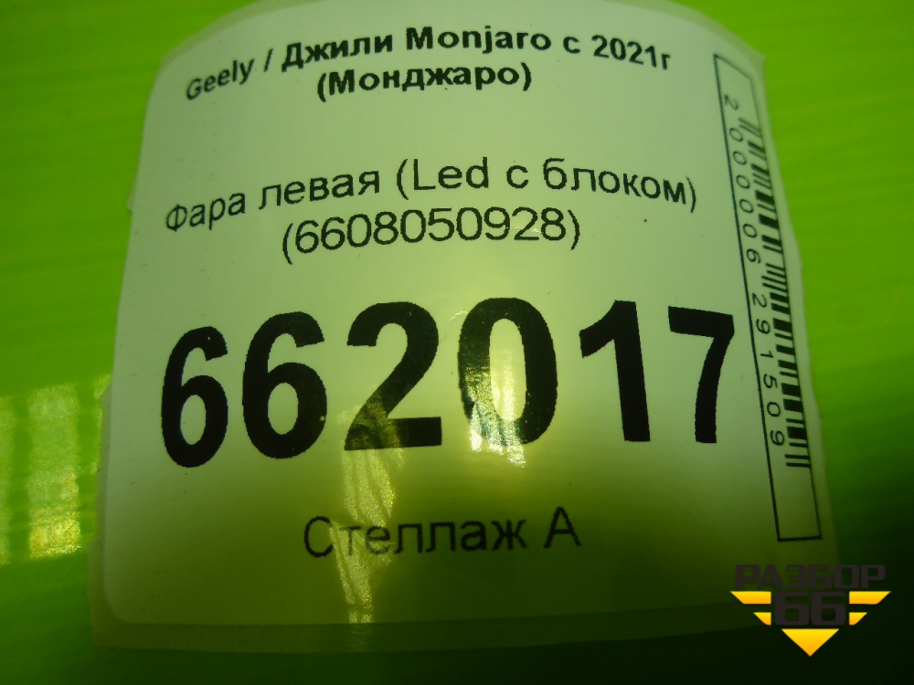 Фара левая (Led с блоком) (6608050928) для Geely Monjaro с 2021г (Монджаро) в Челябинске