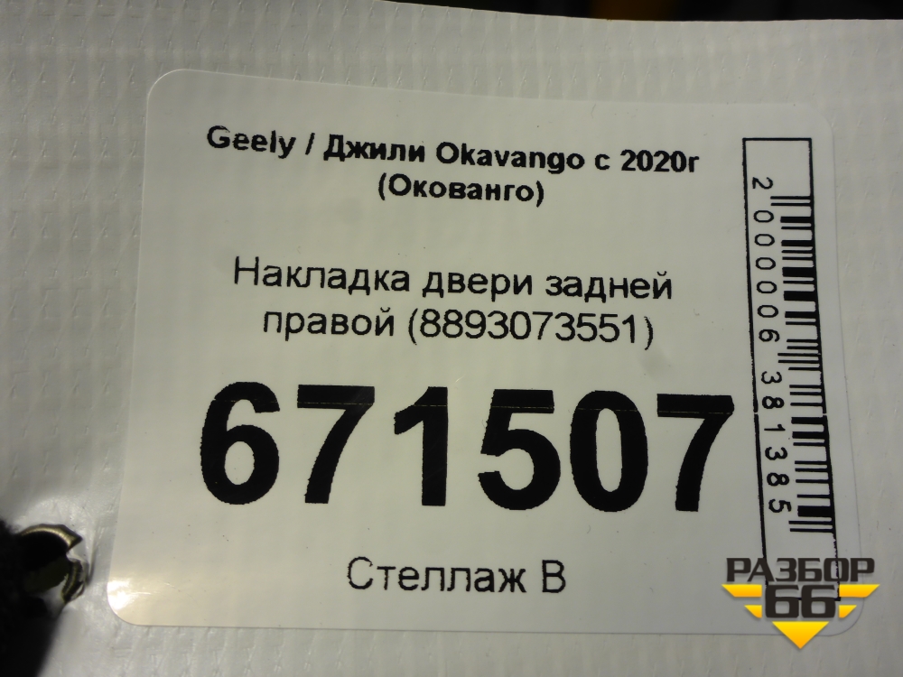 Накладка двери задней правой (8893073551) для Geely Okavango с 2020г (Окованго) в Челябинске