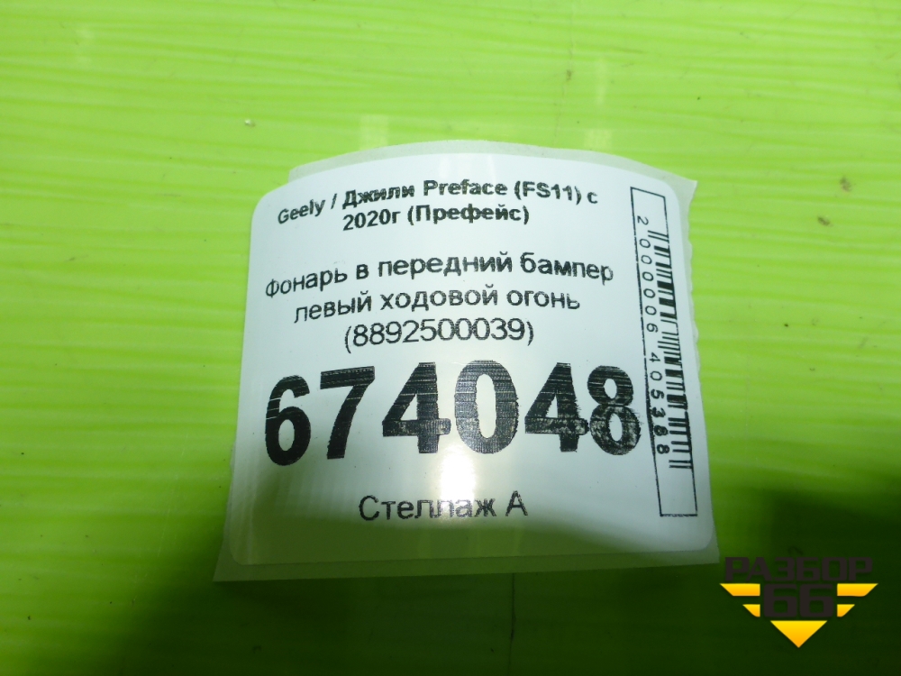 Фонарь в передний бампер левый ходовой огонь (8892500039) для Geely Preface (FS11) с 2020г (Префейс) в Челябинске