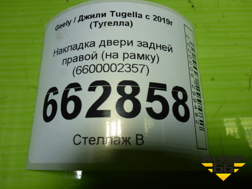 Накладка двери задней правой (на рамку) (6600002357) для Geely Tugella с 2019г (Тугелла) в Челябинске