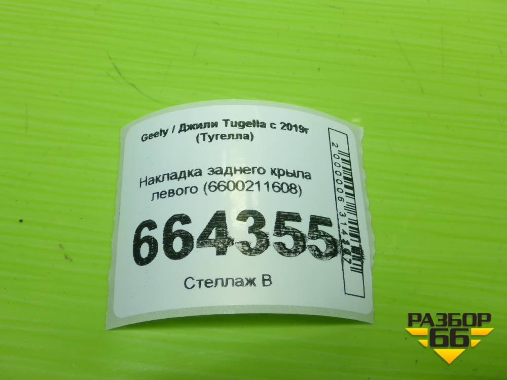 Накладка заднего крыла левого (6600211608) для Geely Tugella с 2019г (Тугелла) в Челябинске