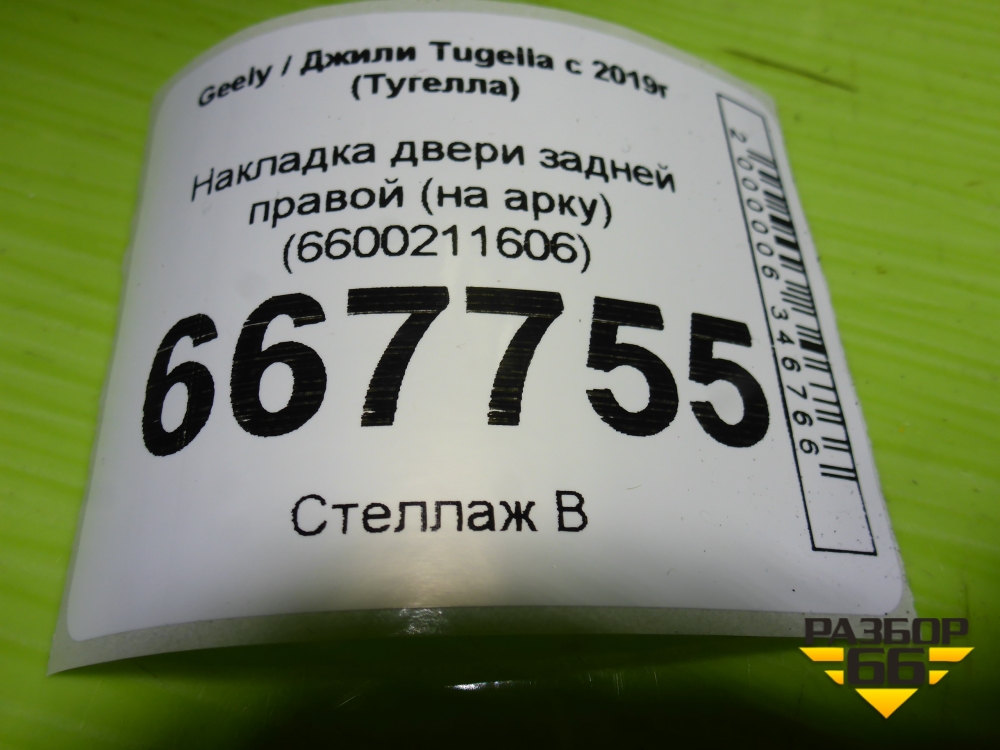 Накладка двери задней правой (на арку) (6600211606) для Geely Tugella с 2019г (Тугелла) в Челябинске
