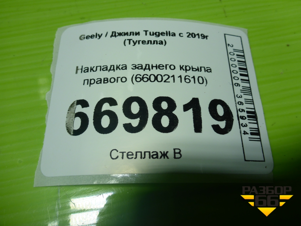 Накладка заднего крыла правого (6600211610) для Geely Tugella с 2019г (Тугелла) в Челябинске