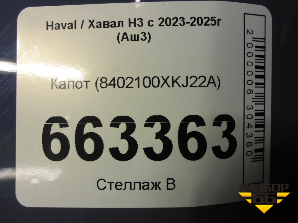 Капот (8402100XKJ22A) для Haval H3 с 2023-2025г (Аш3) в Челябинске