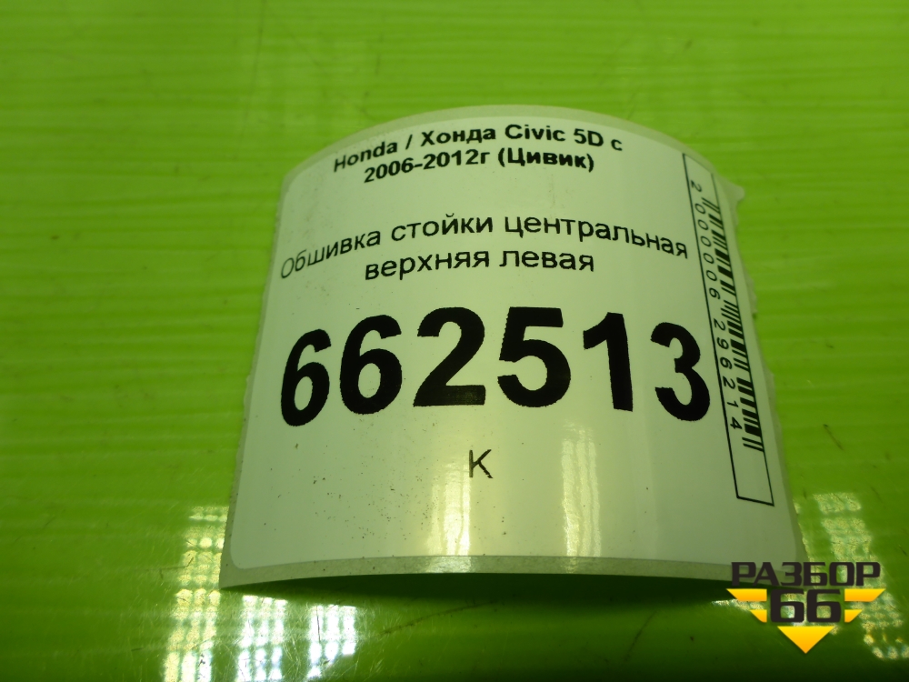 Обшивка стойки центральная верхняя левая (5ти дверный кузов) (84161SMGE030) для Honda Civic 5D с 2005-2011г (Цивик) в Челябинске