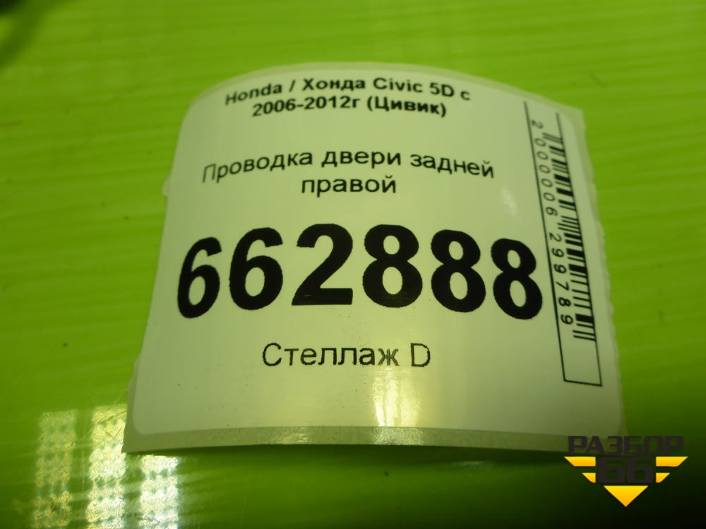 Проводка двери задней правой (32753SMGG1100) для Honda Civic 5D с 2005-2011г (Цивик) в Челябинске