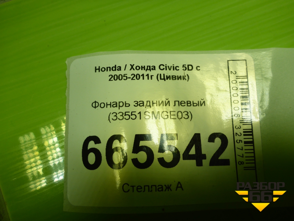 Фонарь задний левый (33551SMGE03) для Honda Civic 5D с 2005-2011г (Цивик) в Челябинске