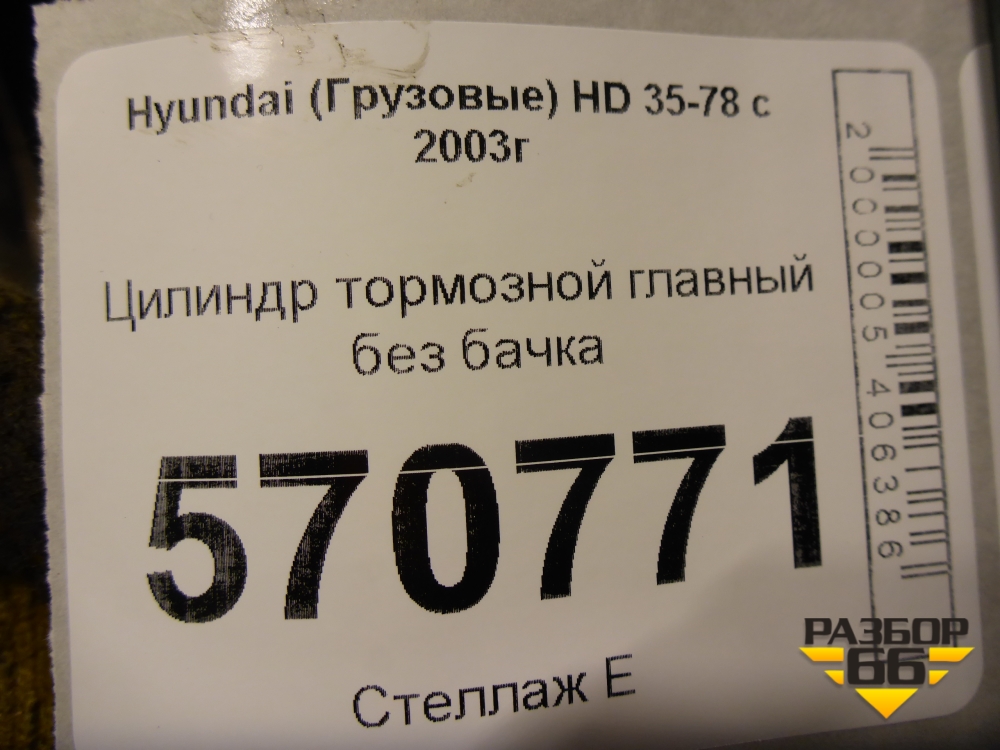 Цилиндр тормозной главный без бачка для Hyundai HD 35-78 с 2003г в Челябинске
