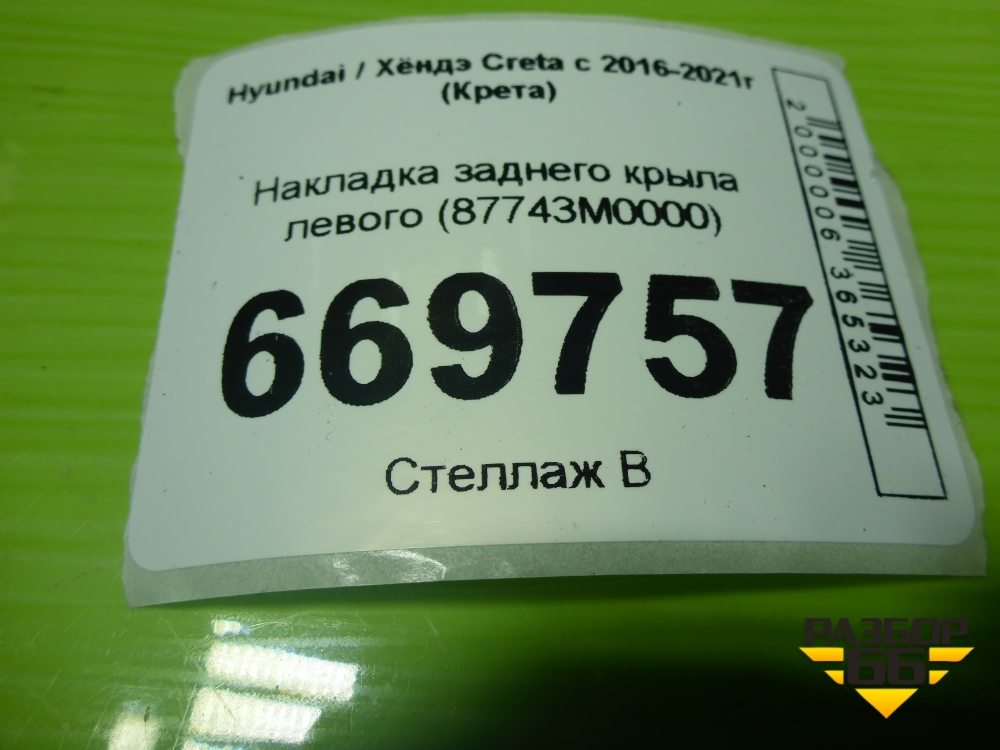 Накладка заднего крыла левого (87743M0000) для Hyundai Creta с 2016-2021г (Крета) в Челябинске