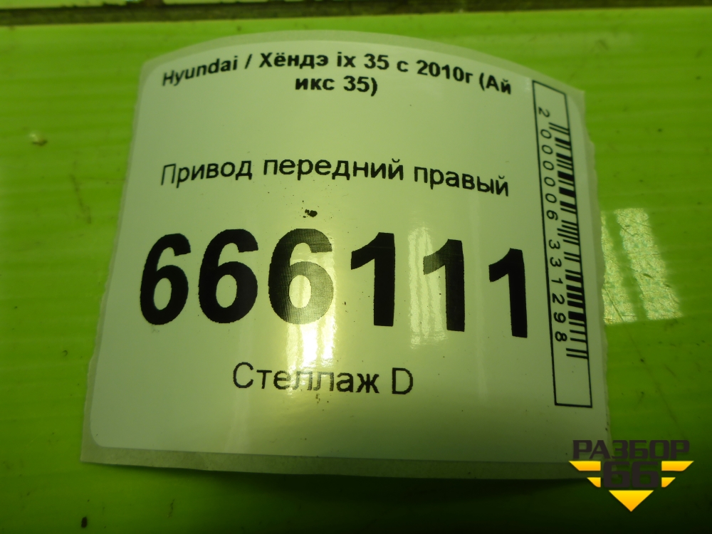 Привод передний правый (2.0л G4KD шлиц наруж-27,внутр-27) (495012Y200) для Hyundai ix 35 с 2010г (Ай икс 35) в Челябинске