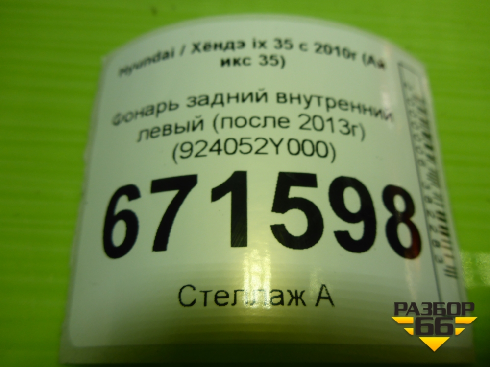 Фонарь задний внутренний левый (после 2013г) (924052Y000) для Hyundai ix 35 с 2010г (Ай икс 35) в Челябинске