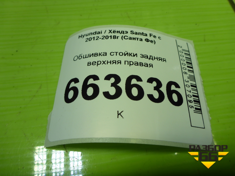 Обшивка стойки задняя верхняя правая (858602W200) для Hyundai Santa Fe с 2012-2018г (Санта Фе) в Челябинске