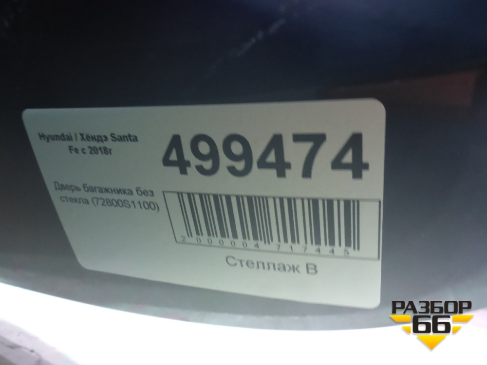 Дверь багажника без стекла (72800S1100) для Hyundai Santa Fe с 2018-2024г (Санта Фе) в Челябинске