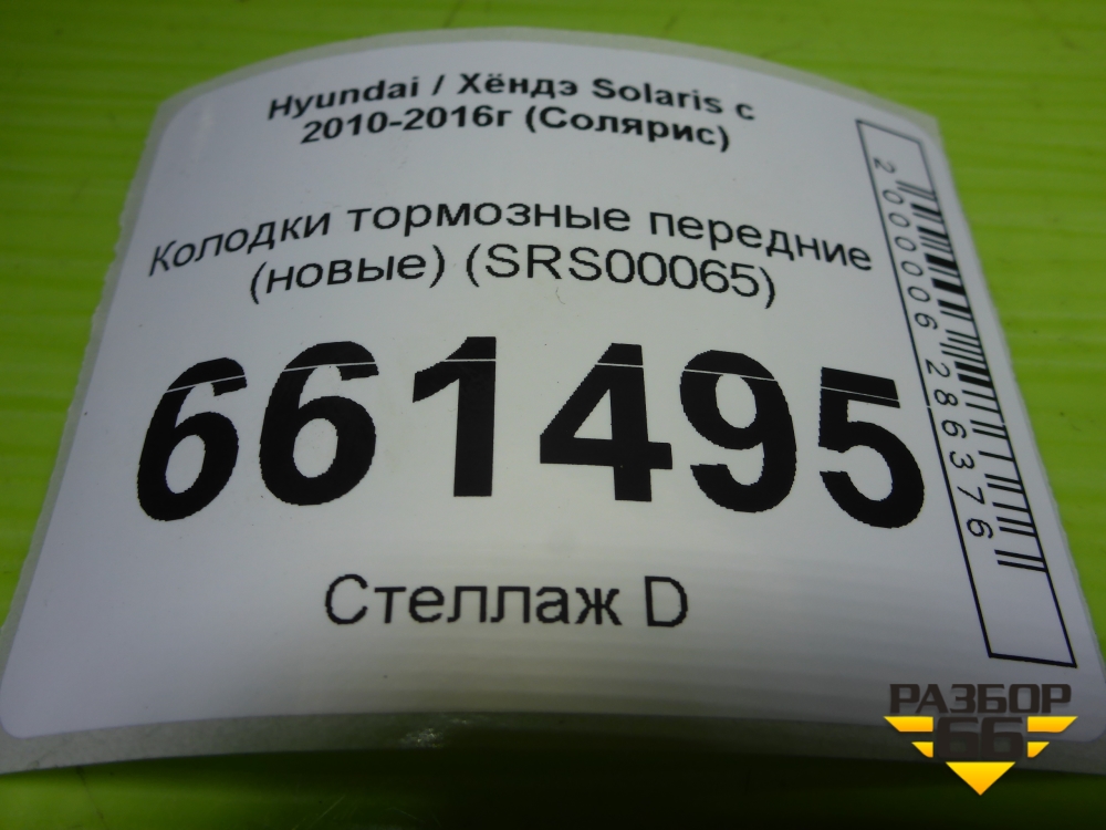 Колодки тормозные передние (новые) (SRS00065) для Hyundai Solaris с 2010-2016г (Солярис) в Челябинске