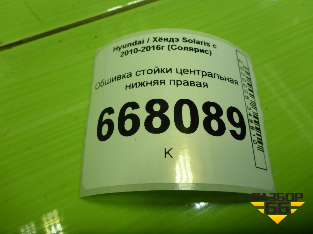 Обшивка стойки центральная нижняя правая (858451R000) для Hyundai Solaris с 2010-2016г (Солярис) в Челябинске